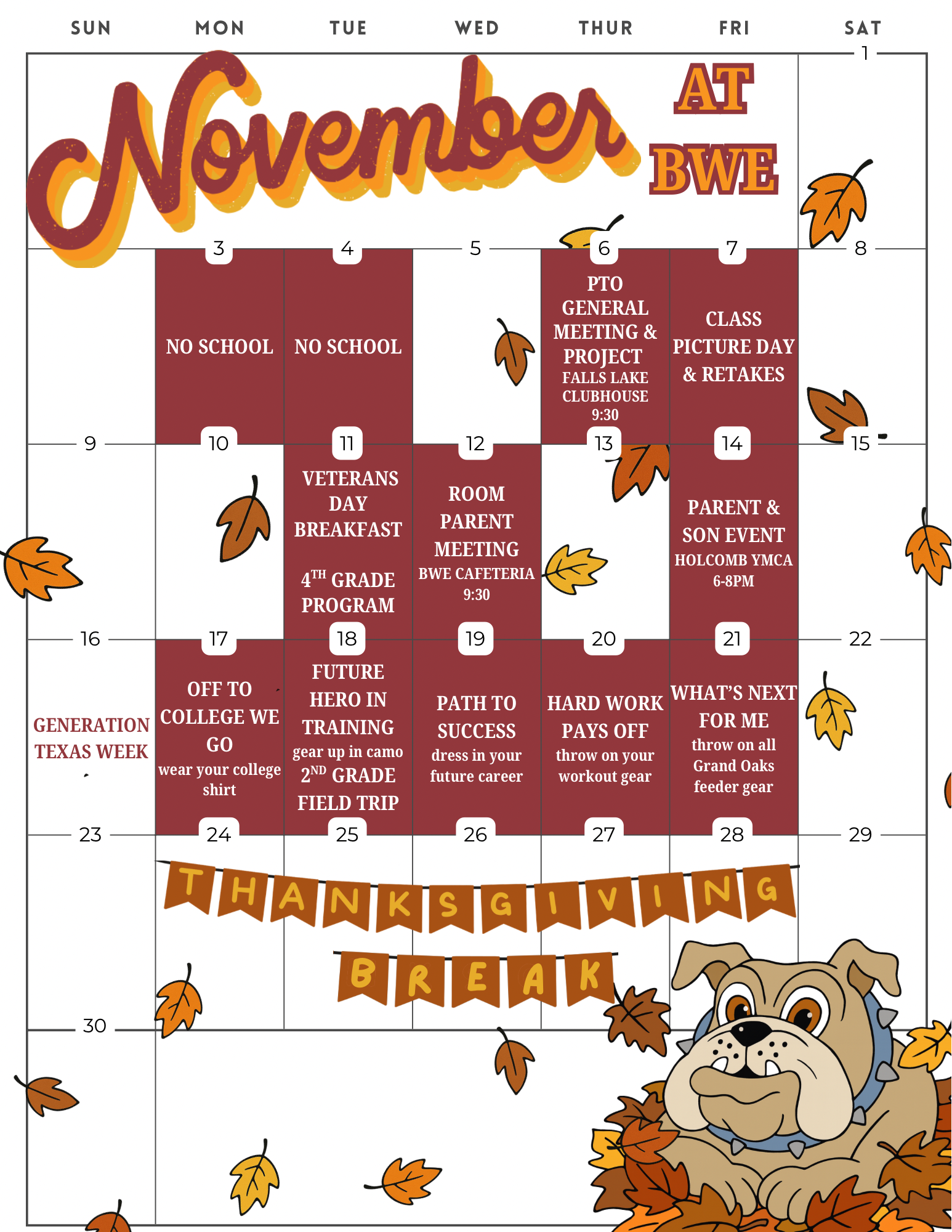 PTO MONTHLY CALENDAR OF EVENTS