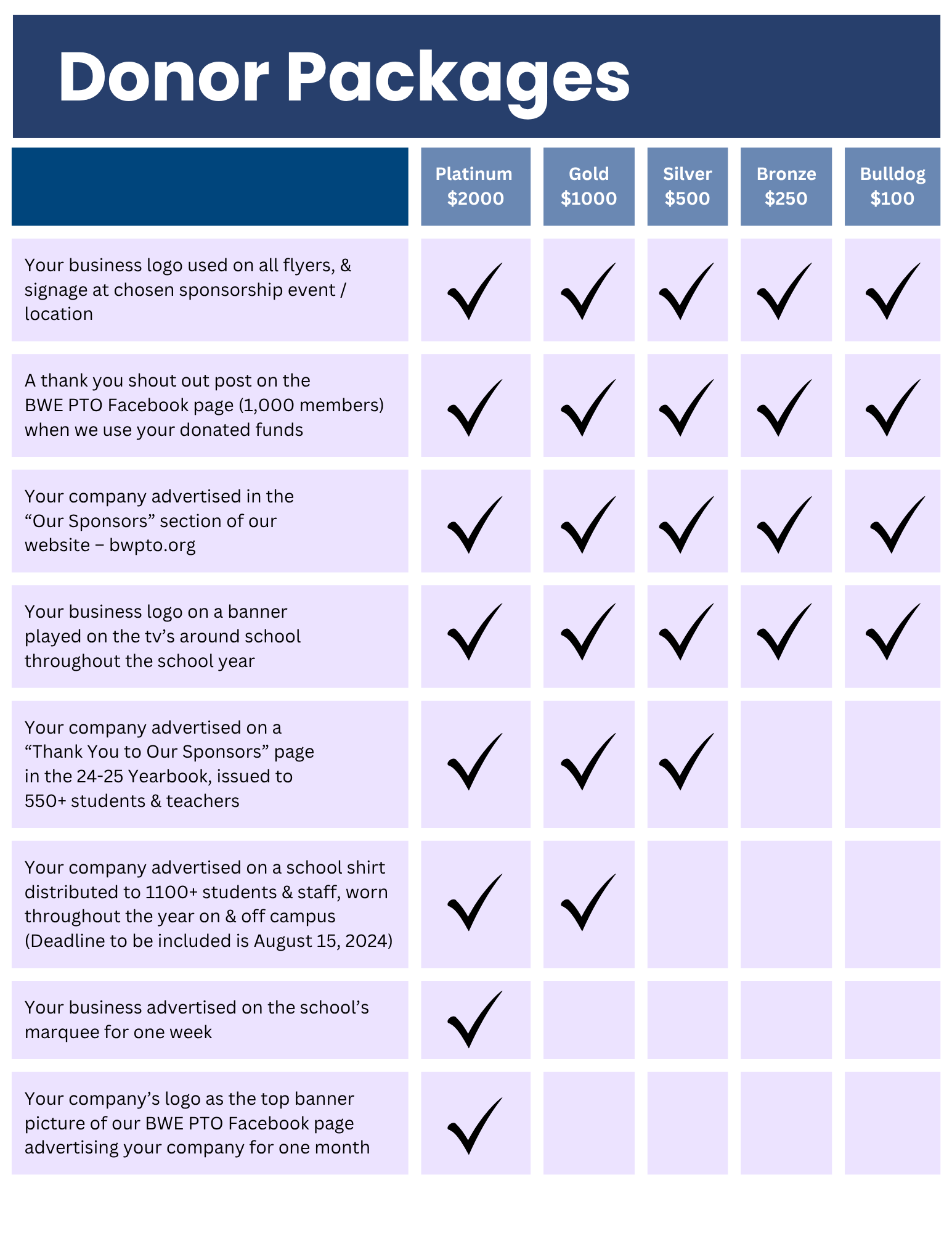 We rely on donations from local businesses like yours to make it all possible. Thank you so much for your consideration of support for the Birnham Woods Elementary PTO. Your donation will help keep BWE the BEST PLACE TO BE in 2025-2026!